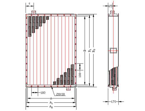 ①-表示鋼制散熱器通風(fēng)正截面長(zhǎng)尺寸分米化整